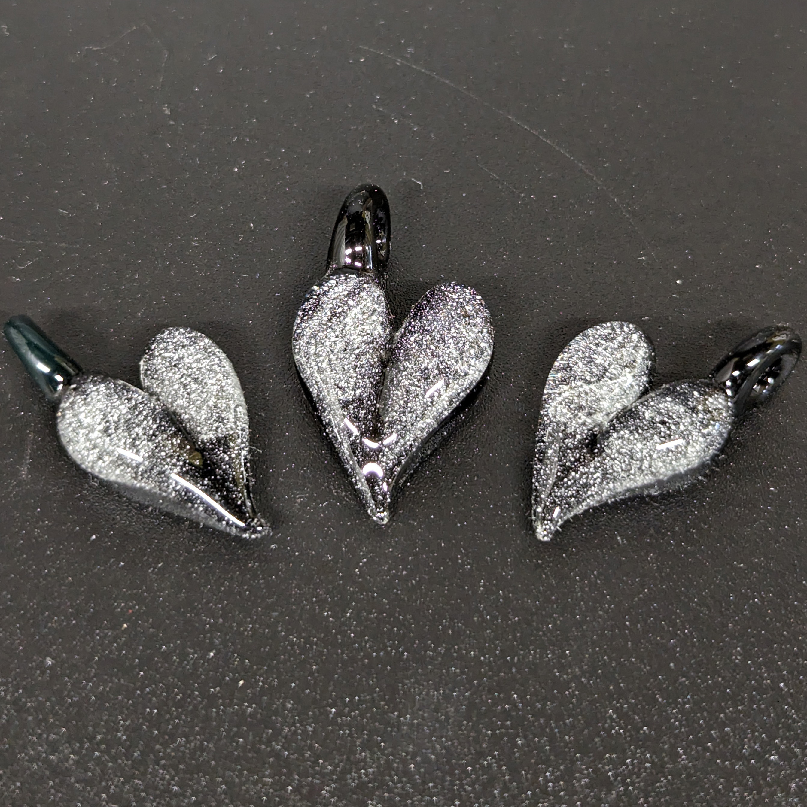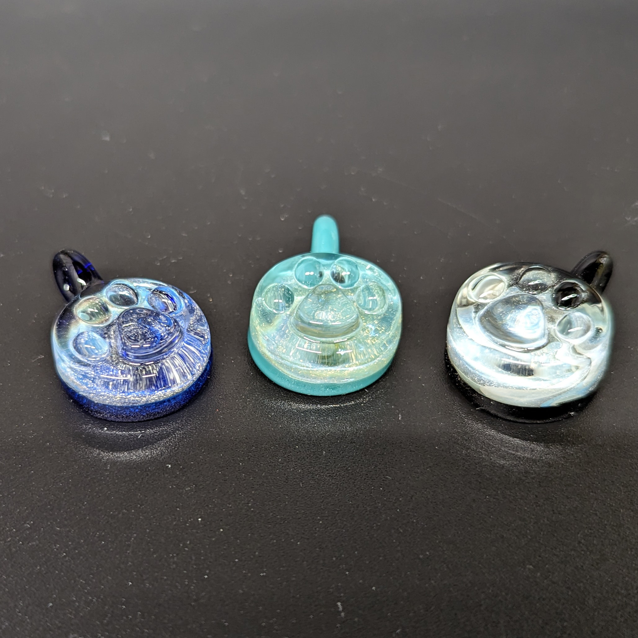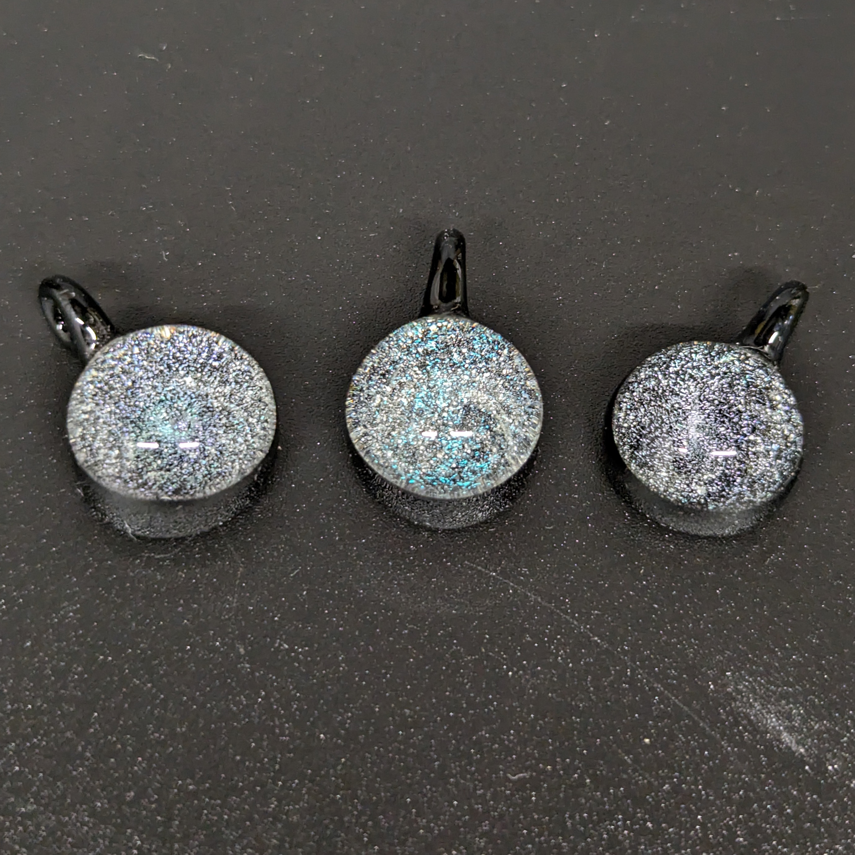Small borosilicate memorial pendants. Pendants measure aprox 1/2 inch. These are customizable and come in a varity of shapes and colors.